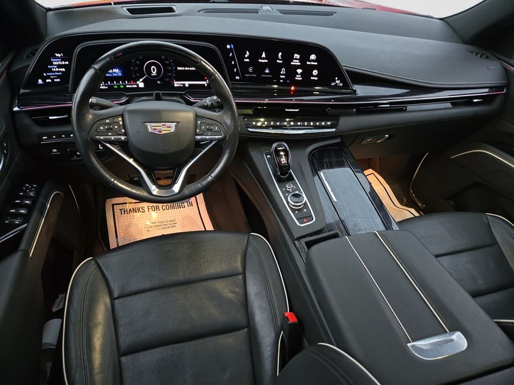 CARFAX One-Owner. Certified. Infrared Tintcoat 2022 Cadillac Escalade Sport 4WD 10-Speed Automatic 6.2L V8 4WD, Black Leather, 16.9" Diagonal OLED Infotainment Screen, 8-Way Power Driver Seat Adjuster, 8-Way Power Front Passenger Seat Adjuster, Adaptive Cruise Control, AKG Studio 19-Speaker Audio System, Automatic Seat Belt Tightening, Automatic Stop/Start, Body-Color Door Handles, Door Lock & Latch Shields, Electronic Limited-Slip Differential, Emergency communication system: OnStar and Cadillac connected services capable, Enhanced Automatic Emergency Braking, Enhanced Automatic Parking Assist, Glass Breakage Sensor, HD Radio, Heads-Up Display, Hitch Guidance w/Hitch View, Integrated Trailer Brake Controller, Memory seat, Navigation System, Power Liftgate, Power Panoramic Tilt-Sliding Sunroof, Preferred Equipment Group 1SC, Radio: AM/FM/SiriusXM w/Navigation, Rear Camera Mirror, Rear Camera Mirror Washer, Rear Cross Traffic Alert, Reconfigurable Full-Color Head-Up Display, Reverse Automatic Braking, Running Board Assist Steps, SiriusXM w/360L, Smart Trailer Integration Indicator, Start/Stop System Disable Button, Teen Driver, Theft-Deterrent Alarm System, Trailer Side Blind Zone Alert, Vehicle Inclination Sensor, Vehicle Interior Movement Sensor, Wireless Apple CarPlay/Wireless Android Auto.