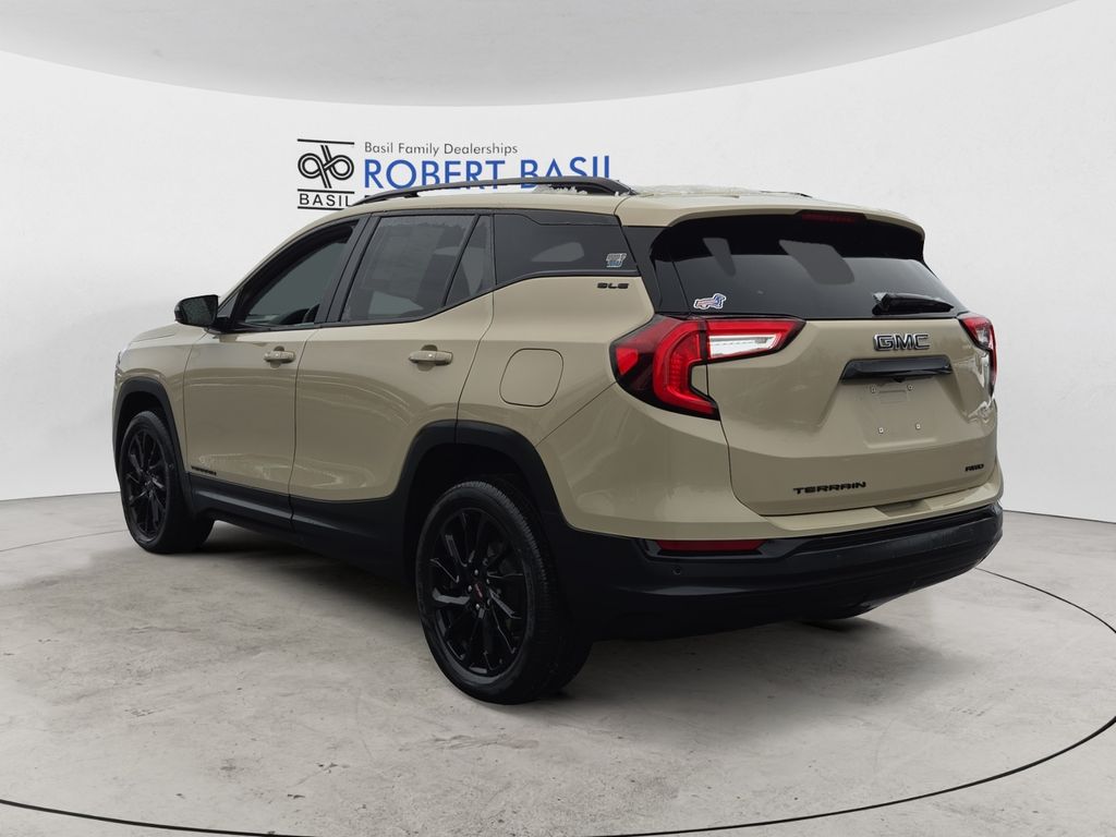 CARFAX One-Owner. Clean CARFAX. Certified. Desert Sand Metallic 2023 GMC Terrain SLE AWD 9-Speed Automatic 1.5L DOHC AWD, Adaptive Cruise Control, Black GMC Center Caps w/Red GMC Lettering, Black Mirror Caps, Darkened Front Grille, Elevation Edition, Floor Liner Package (LPO), Front & Rear All-Weather Floor Liners (LPO), Integrated Cargo Liner (LPO), Lane Change Alert w/Side Blind Zone Alert, License Plate Front Mounting Package, Outside Heated Power-Adjustable Mirrors, Preferred Equipment Group 3SA, Rear Cross-Traffic Alert, Rear Park Assist, Roof-Mounted Luggage Rack Side Rails, Safety Alert Seat, Side Blind Zone & Rear Cross Traffic, Terrain Pro Safety Plus, Wheels: 19" Gloss Black Aluminum.