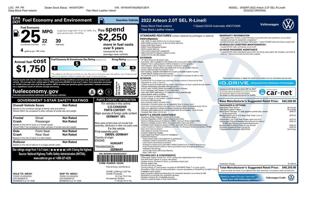 Basil Discounts and Buy For Pricing may include dealer cash or incentives in lieu of Special Financing rates. Alternatively, Basil Discounts and Buy For Pricing may also include dealer cash, which special financing through VCI is required. See dealer for details. Basil 'Buy For Price - is not compatible with any other special offers, loyalty offers or trade-in events. Additional discounts may be available, inquire for details. All advertised prices exclude government fees and taxes, any finance charges, any dealer document processing charge, any electronic filing charge, and any emission testing charge. While great effort is made to ensure the accuracy of the information on this site, errors do occur so please verify information with a customer service rep. This is easily done by calling/texting us at (716) 625-4444 or by visiting us at the dealership.