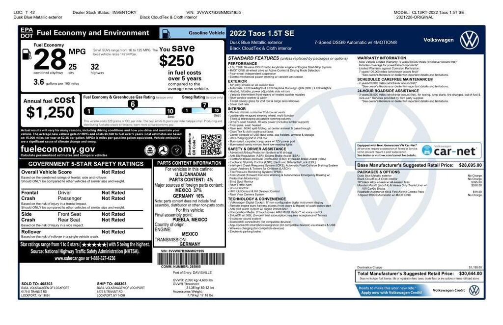 Basil Discounts and Buy For Pricing may include dealer cash or incentives in lieu of Special Financing rates. Alternatively, Basil Discounts and Buy For Pricing may also include dealer cash, which special financing through VCI is required. See dealer for details. Basil 'Buy For Price - is not compatible with any other special offers, loyalty offers or trade-in events. Additional discounts may be available, inquire for details. All advertised prices exclude government fees and taxes, any finance charges, any dealer document processing charge, any electronic filing charge, and any emission testing charge. While great effort is made to ensure the accuracy of the information on this site, errors do occur so please verify information with a customer service rep. This is easily done by calling/texting us at (716) 625-4444 or by visiting us at the dealership.