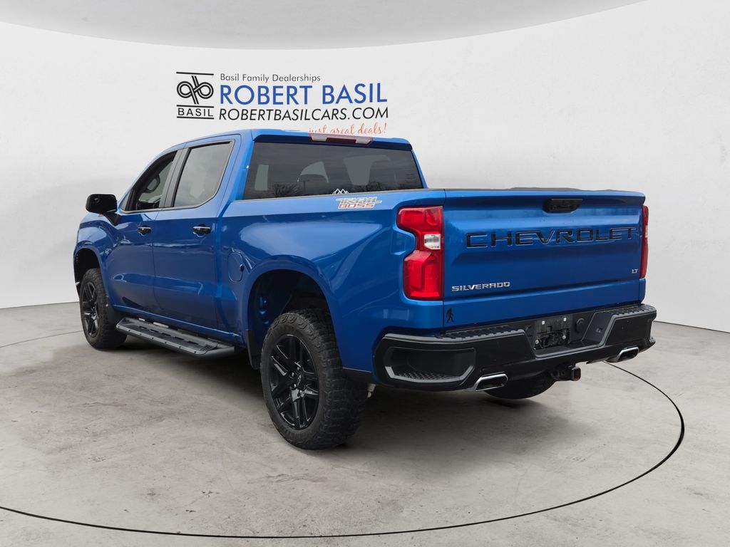 CARFAX One-Owner. Clean CARFAX. Glacier Blue Metallic 2022 Chevrolet Silverado 1500 LT Trail Boss 4WD 10-Speed Automatic EcoTec3 5.3L V8 10-Speed Automatic, 4WD, Black Cloth, 10-Way Power Driver Seat w/Lumbar, 12.3" Multicolor Reconfigurable Digital Display, 120-Volt Bed Mounted Power Outlet, 120-Volt Instrument Panel Power Outlet, 6-Speaker Audio System, All-Weather Floor Liner (LPO) (AAK), Auto-Locking Rear Differential, Bluetooth® For Phone, Chevrolet Connected Access Capable, Color-Keyed Carpeting Floor Covering, Compass, Convenience Package, Deep-Tinted Glass, Dual Rear USB Ports (Charge Only), Dual-Zone Automatic Climate Control, Electric Rear-Window Defogger, Electrical Steering Column Lock, Electronic Cruise Control, EZ Lift Power Lock & Release Tailgate, Front LED Fog Lamps, HD Rear Vision Camera, Heated Driver & Front Outboard Passenger Seats, Heated Power-Adjustable Outside Mirrors, Heated Steering Wheel, Heavy-Duty Air Filter, High Gloss Black Mirror Caps, Hill Descent Control, Hitch Guidance, Inside Rear-View Mirror w/Tilt, Keyless Open & Start, Leather Wrapped Steering Wheel, LED Cargo Area Lighting, Manual Tilt/Telescoping Steering Column, OnStar & Chevrolet Connected Services Capable, Performance Red Recovery Hooks, Power Front Windows w/Driver Express Up/Down, Power Front Windows w/Passenger Express Down, Power Rear Windows w/Express Down, Preferred Equipment Group 2LT, Rear 60/40 Folding Bench Seat (Folds Up), Remote Vehicle Starter System, SiriusXM w/360L, Standard Tailgate, Steering Wheel Audio Controls, Suspension Package, Theft Deterrent System (Unauthorized Entry), Trailering Package, Wi-Fi Hot Spot Capable, Wireless Phone Projection.