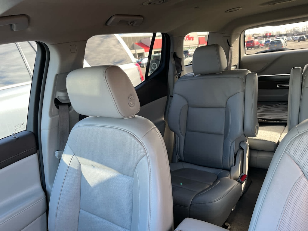 Third Row Seat, Navigation, Quad Bucket Seats, Power Liftgate, Rear Air Non-Smoker vehicle GMC SLT with Summit White exterior and Cocoa/Light Ash Gray interior features a V6 Cylinder Engine with 310 HP at 6600 RPM*.