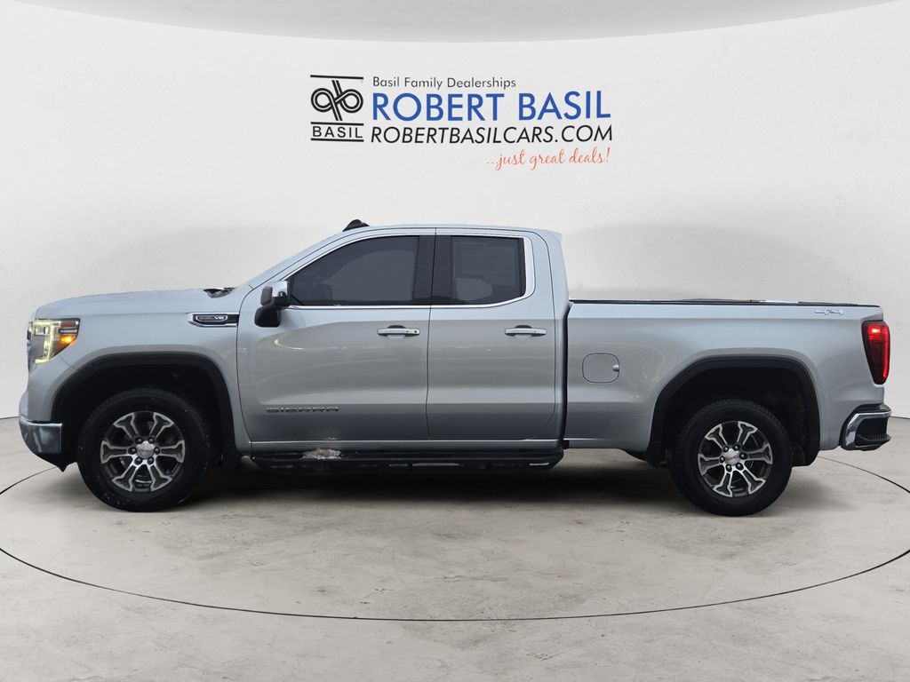 Clean CARFAX. Quicksilver Metallic 2022 GMC Sierra 1500 Limited SLE 4WD 10-Speed Automatic EcoTec3 5.3L V8 12-Volt Rear Auxiliary Power Outlet, Auto-Locking Rear Differential, Chrome Grille, Color-Keyed Carpeting Floor Covering, Compass, Deep-Tinted Glass, Dual-Zone Automatic Climate Control, Electric Rear-Window Defogger, Front Frame-Mounted Black Recovery Hooks, Front Rubberized-Vinyl Floor Mats, GMC Connected Access Capable, Heated Steering Wheel, Hitch Guidance, Keyless Open & Start, LED Cargo Area Lighting, Manual Tilt-Wheel & Telescoping Steering Column, OnStar & GMC Connected Services Capable, Power Door Locks, Power Front Windows w/Driver Express Up/Down, Power Front Windows w/Passenger Express Down, Power Rear Windows w/Express Down, Preferred Equipment Group 3SA, Rear Dual USB Charging-Only Ports, Rear Rubberized-Vinyl Floor Mats, Rear Wheelhouse Liners, Remote Vehicle Starter System, SLE Convenience Package, SLE Value Package, Steering Wheel Audio Controls, Theft Deterrent System (Unauthorized Entry), Trailering Package, Wi-Fi Hotspot Capable.